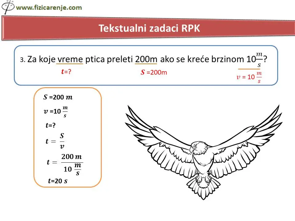 3. Za koje vreme ptica preleti 200m ako se kreće brzinom 10 m/s?