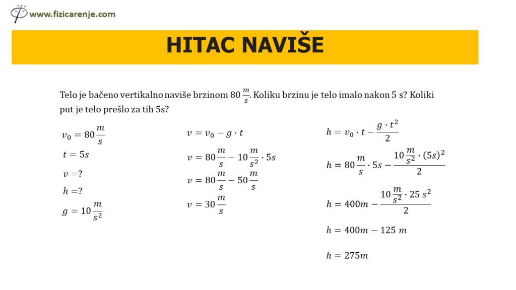 Hitac naviše je ravnomerno usporeno kretanje.