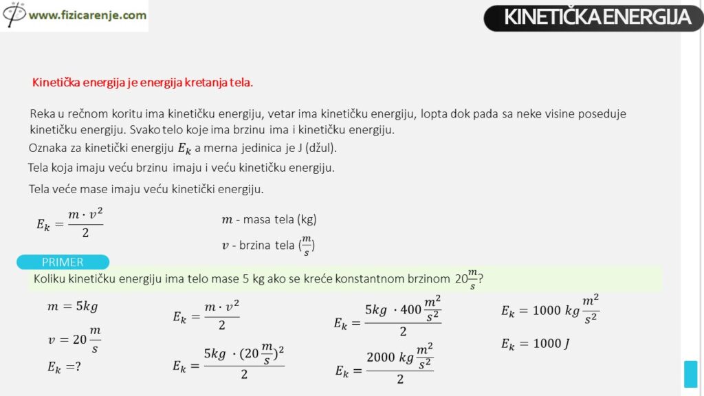 4. Kako se izračunava kinetička energija?