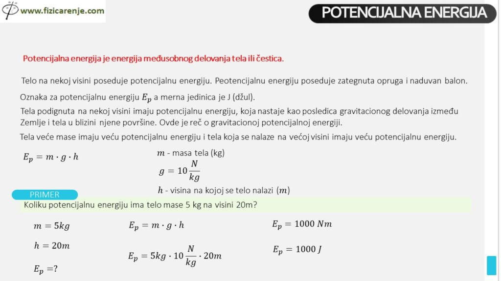 5. Kako se izračunava potencijalna energija?