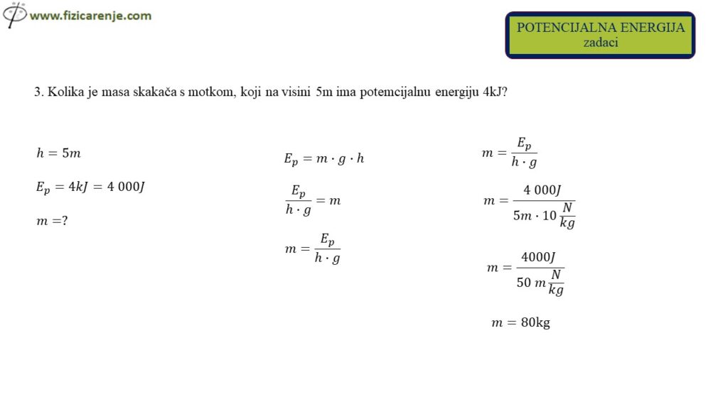 3. Kolika je masa skakača s motkom, koji na visini 5m ima potencijalnu energiju 4 kJ?