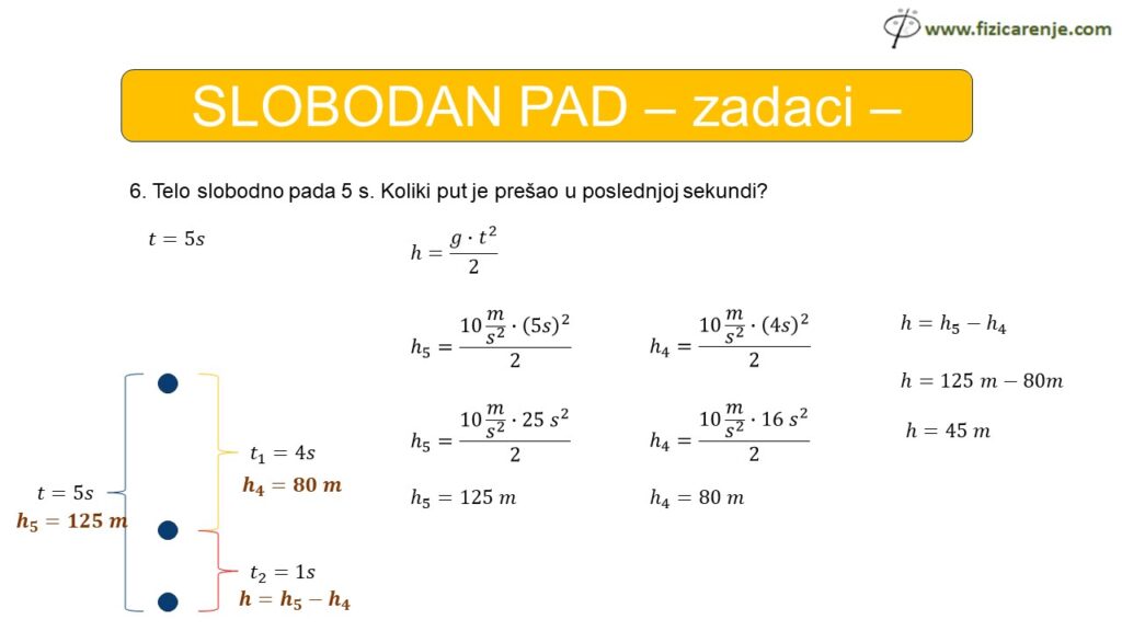 6. Telo slobodno pada 5 s. Koliki put je prešao u poslednjoj sekundi?