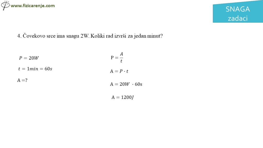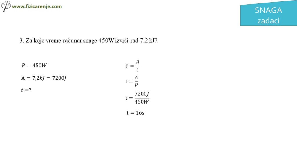 – Izračunaš snagu kada znaš rad i vreme