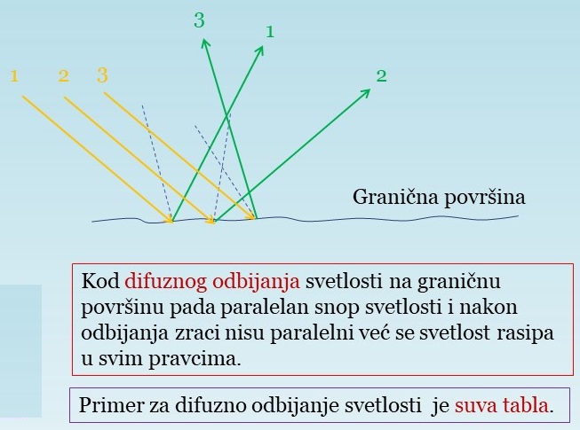 Zraci se odbijaju u različitim pravcima, jer svaka neravnina menja ugao odbijanja.