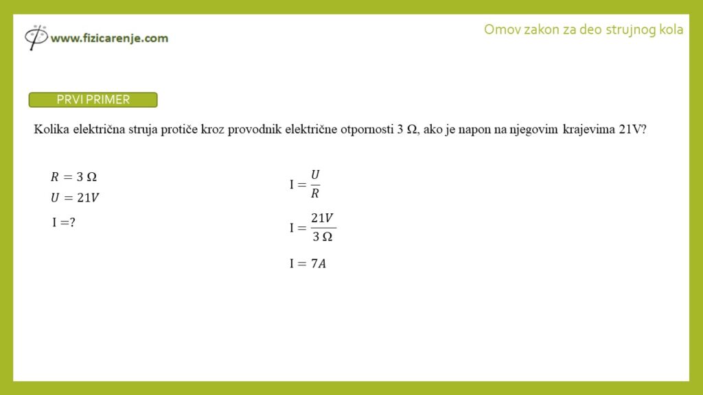 1. Kolika električna struja protiče kroz provodnik električne otpornosti 3 Ω, ako je napon na njegovim krajevima 21 V?