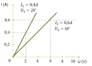 4. Merenjem električne struje i napona dva otpornika dobijen je grafik zavisnosti električne struje od napona kao na slici.