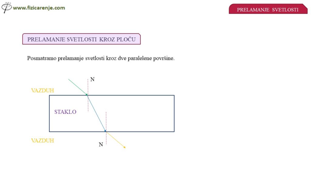 9. Prelamanje svetlosti kroz ploču (Nacrtaj sliku i objasni)