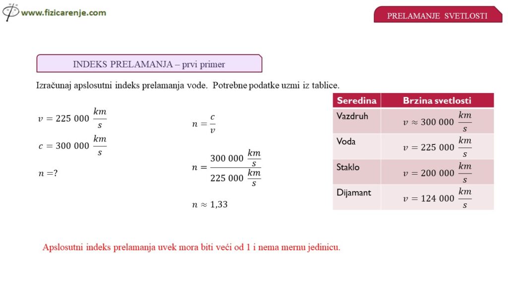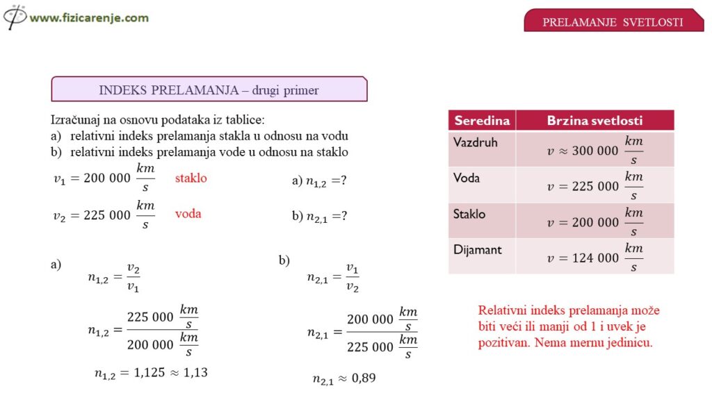 🔹 Kako računamo apsolutni i relativni indeks prelamanja,
