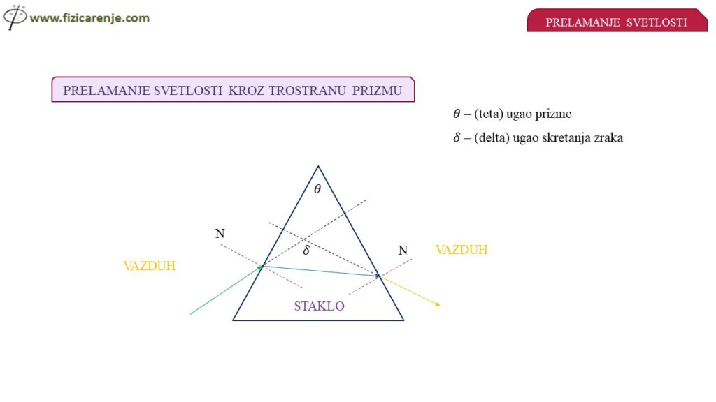 10. Prelamanje svetlosti kroz trostranu prizmu (Nacrtaj sliku i objasni)