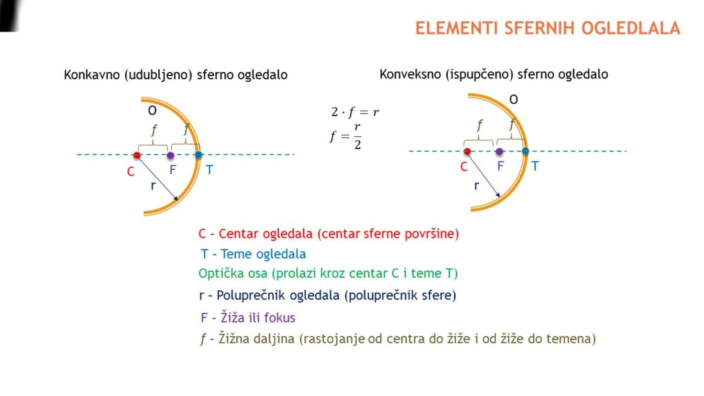 🔸 Koji su njihovi glavni elementi – poput centra zakrivljenosti, žiže i ose,