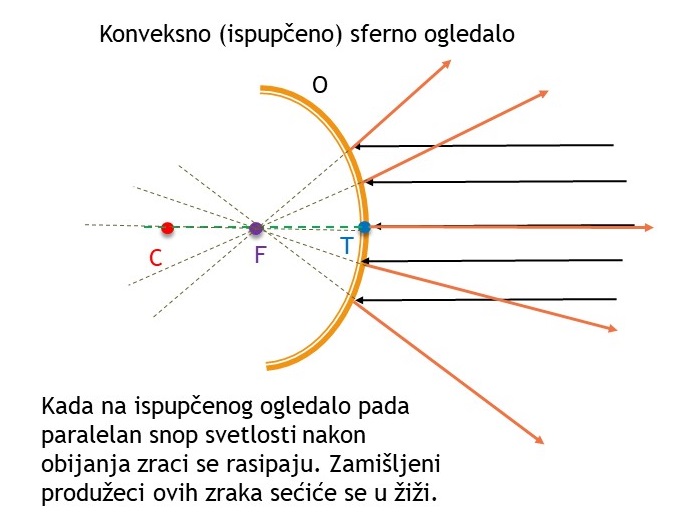 – Konveksno (ispupčeno) ogledalo – spoljašnja strana sfere je reflektujuća.