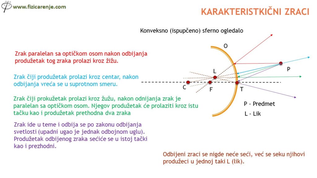 6. Karakteristični zraci kod konveksnog ogledala. (Nacrtaj sliku i objasni.)