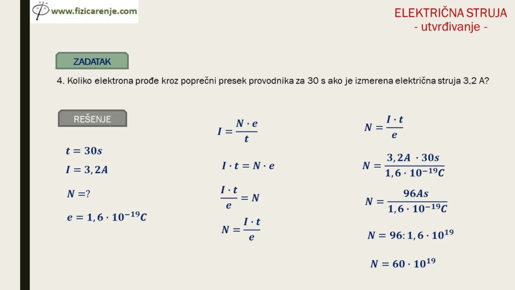 Kroz nekoliko zadataka naučićeš kako da izračunaš broj elektrona, uporediš jačinu struje u različitim situacijama i razumeš zašto je vreme u sekundama, a ne u minutima, ključno u fizici.