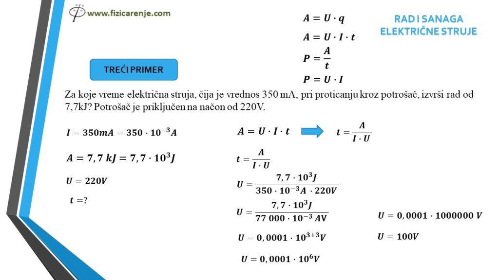 - kako da izračunaš rad kada znaš napon, struju i vreme,